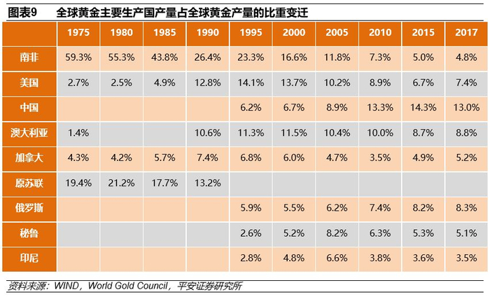 过去半个世纪里,全球官方黄金储备总额稳定在3万吨左右,但官方黄金储备的分布结构却发生了明显的变化。从官方黄金储备的分布结构看,美国、德国、意大利、法国、荷兰、葡萄牙等老牌资本主义强国持有大量的官方黄金储备,黄金储备占国际储备的比率均高于60%;相较之下,俄罗斯、中国、瑞士、日本等国家虽然也持有较大规模的黄金储备,但黄金储备占官方储备的比重较低,中国与日本的比重仅为2.4%与2.5%,印度黄金储备占官方储备的比重也仅为6.2%,与老牌资本主义强国的差距显著。在新兴市场黄金储备占国际储备总额的比重过低的情况下,未来新兴市场将持续提升黄金储备占官方储备的比重,这也是黄金价格值得长期看好的一大理由。