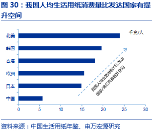(1)我国人均生活用纸量具备提升空间。