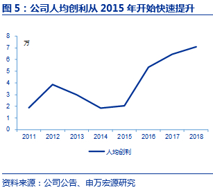 内部团队梳理并优化,引进专业团队提升软实力。公司2015年以来持续从市场引进销售、生产等专业人才,营销组织框架更加细化,经销商管理更加精准。并于2015年推出限制性激励和员工持股计划,全面激励公司管理和经营团队。随着新营销团队的逐渐发力,积极针对市场变化制定对策,公司治理及经营取得较好进展。年人均创收达98.81万元(vs 2014年68.38万元),人均创利7.08万元(vs 2014年 1.83万元),经营效率大幅提升。2017/2018年销售收入分别增长21.8%/22.4%,增速高于恒安及维达生活用纸业务增速(恒安2017/2018 yoy3.6%/14.3%;维达yoy 1.7%/16.4%)。
