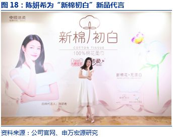 原材料及生产工艺在行业中领先,研发实力较强,差异化竞争,具备部分定价权。公司纸浆采用国外进口的优质原生木浆,在工艺方面,公司拥有一流专业的技术团队队伍,保证国际水准的产品质量。公司研发能力在行业居于领先地位,研发创新产品获得多项国家专利,分别于2013年研发出超迷你手帕纸、2014年研发出添加保湿成分生活用纸、以及2017和2018年热销的自然木系列、新棉初白新品。例如,自然木系列:1)消费者对于环保类生活用纸的青睐有利于提升产品客群粘性;2)该类纸产品附加值更高,我们预计毛利率超过45%,有效提升综合盈利能力。