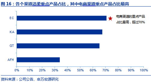 KA:与国内大型商业连锁卖场合作,通过营销策略提升自身优势。商超渠道主要为洁柔与沃尔玛、华润万家、大润发、家乐福、步步高和永辉等大型连锁卖场建立合作关系,并逐步将一些重点的卖场转为公司直营。2018年公司销售网点持续扩展下沉,通过车铺车销、一日一店一改善,门店陈列与库存进行抢、占、挤、压等具体动作执行,为公司业绩增长提供持续的驱动力。公司相比于其他同业公司,通过价值营销而非价格营销缓解了利润端的压力,不断进行消费者互动,增强品牌认知和粘性。