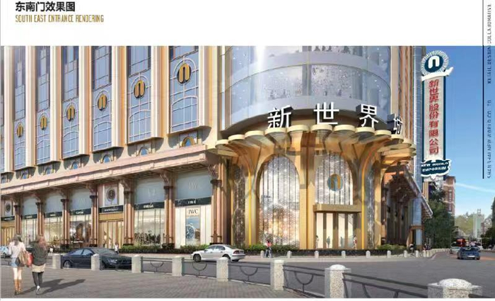 新世界城的金色入口和内部大厅效果图