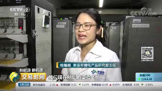 钱韫娴 新宙邦锂电产品研究部主任:我们现在所处的实验室 就是我们的电池常温测试实验室 那你所看到的这个充放电仪 就是用来快速筛选我们的电池循环性 这里面大约有十个配方 每个配方约有五个电池来进行循环测试 经过长时间的循环以后 我们能够快速地筛选出 我们客户所需要这样的一个精确配方