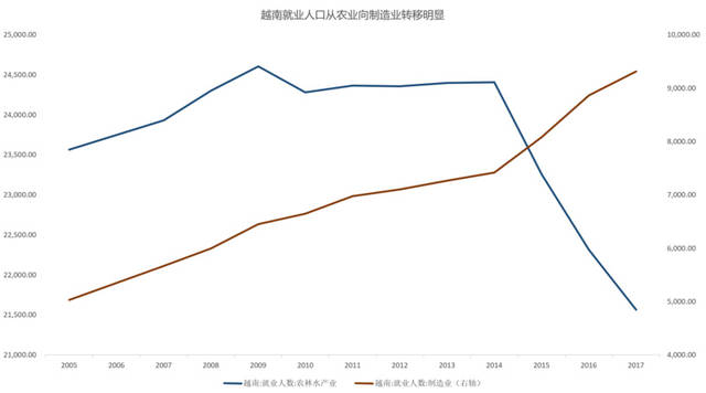 泰国和越南的人口产业转移更为明显: