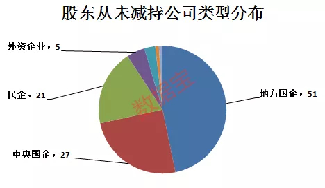 国有企业累计占榜单接近八成。这可能意味着,股东之所以从未减持公司股份,可能是政治方面的原因,比如担心担责国有资产流失或者政治影响不好等,而不是经济方面的原因,即并非因为长期看好公司价值而不减持。