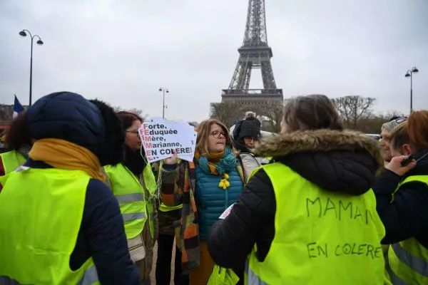 ▲资料图片:1月20日,“黄背心”抗议者在巴黎埃菲尔铁塔前示威。(法新社)