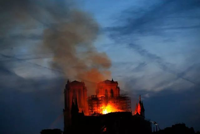 ▲当地时间2019年4月15日,法国巴黎,法国巴黎著名地标巴黎圣母院起火,火情迅速蔓延,塔尖在大火中坍塌。(东方IC)