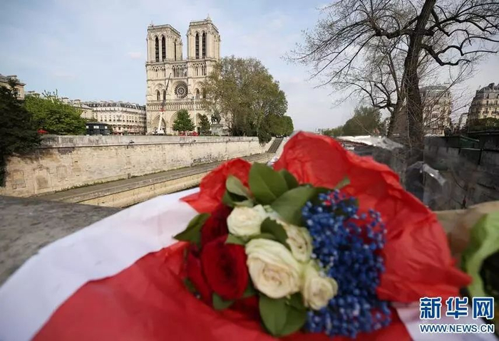 ▲4月18日,在法国巴黎,人们为巴黎圣母院献上与法国国旗同色的红白蓝鲜花。法国总统马克龙16日晚发表简短电视讲话时表示,希望在5年内重建巴黎圣母院。