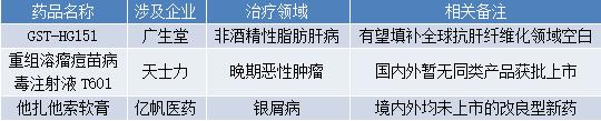 目前全球范围内尚没有批准任何药物用于非酒精性脂肪肝病(NAFLD)和非酒精性脂肪性肝炎(NASH)的治疗,广生堂的GST-HG151有望填补全球抗肝纤维化领域的空白,公司也将积极开展美国FDA等的国际临床注册申报事宜。天士力的产品在国内外暂无同类产品获批上市,亿帆医药的产品则为境内外均未上市的改良型新药。