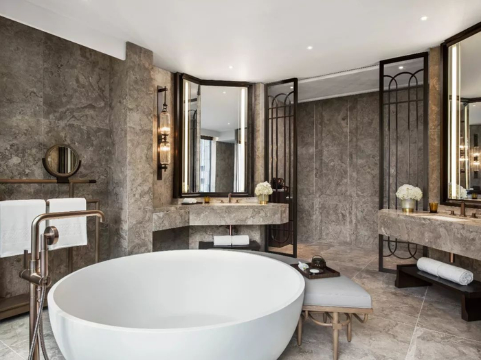 瑞吉的最终呈现不负重望:挑高6.4米的大堂运用大篇幅大理石和镀金描绘纽约今昔,同时尽显空间即奢华的哲思;酒店各设施恍若宇宙的嘉年华,印度扒房、中国茶室、西班牙休息室、庞贝风格桌球室、德国狩猎室共处同一屋檐下;为了达到足不出城即可感受隐居的逍遥感,9楼的私人包厢仿造成富豪游艇的船舱,并用壁画描绘长岛景致;各套房被赋予各自鲜明的特性——新艺术风格的、帝国时代风格的、文艺复兴式的、致敬凡尔赛的......