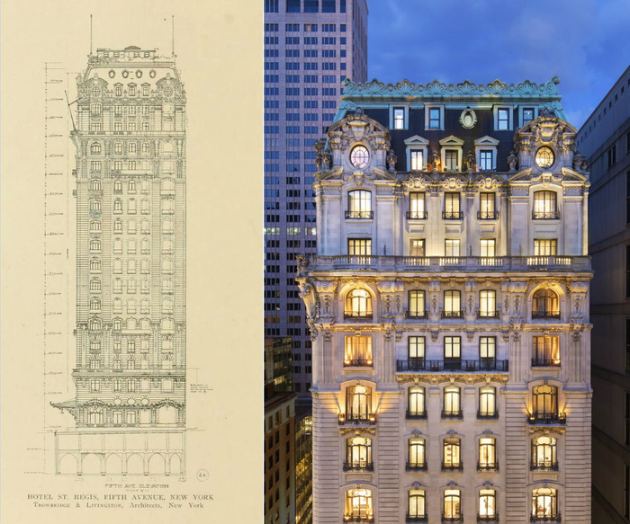 华尔道夫是成功的,但随着社交重心东移至中央公园,阿斯特四世开始筹划在临近中央公园处缔造新酒店,这就成就了落成于1904年、由大名鼎鼎的Trowbridge & Livingston建筑事务所操刀、呈艺术风格的瑞吉酒店。