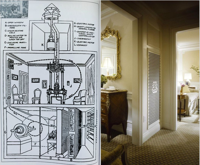 不过,最令瑞吉脱颖而出的莫过于先锋科技的植入——厨房和宴会厅间有专门运送食物的电梯、制冰器每天制冰120吨、各层都设有电控防火门、还有当年极尽“黑科技“的空调。