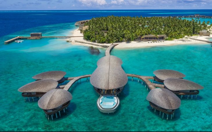 这间度假村刚开不久就引得妮可·基德曼和凯斯·厄本两口子前去蜜月。伊瓦·朗格利亚在内的诸多美人也都将其征为隐世据点。为此,一些高阶别墅很知趣地配备了直通直升机平台的秘径,确保名人最珍视的隐私滴水不漏。