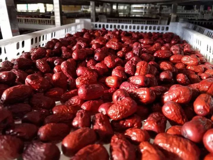 然后还要在50~55℃的温度下烘干,最大程度保留了灰枣自然的香甜。
