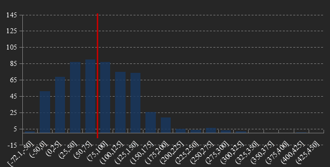 随着竞争越来越激烈,各私募要证明自己的“护城河”,要建立与别人不一样的优势其实比较困难。我们将过去业绩跑满五年的所有私募拉出来,做了一个分布图,看看有多少私募产品落在收益区当中(图中是扣费后业绩)。