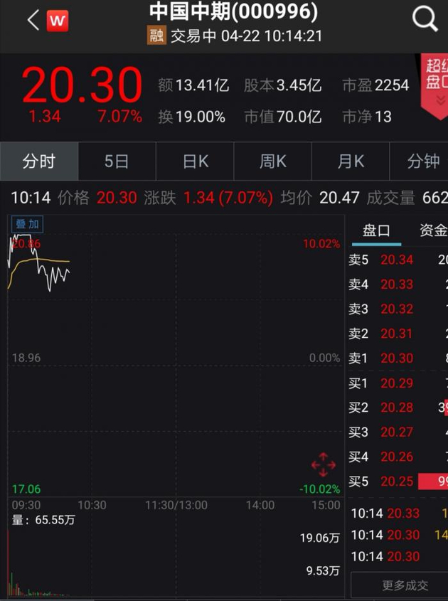 中国中期、弘业股份涨停,美尔雅、物产中大等涨幅超过6%,随后迅速回落,中国中期打开涨停?