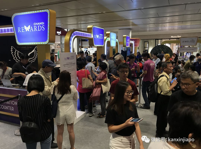 持有观光券的民众有秩序地扫码进入星耀樟宜。据说当时大家也都是挤破头才抢到的观光券,每人限领4张,网站当时都崩了。