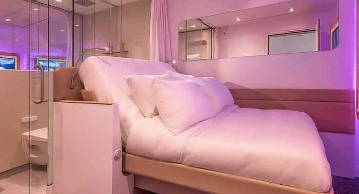 这大概是新加坡最高级的“钟点房”了吧!YOTELAIR共设130间客房,为了方便转机的旅客小憩,酒店房间可以只订4个小时。