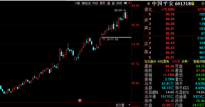 中国平安自1月4日低点以来股价一路上行,不断刷新历史记录,累积涨幅达54.56%。公司2018年实现营业收入9768亿元,同比增长9.65%;实现净利润1074亿元,同比增长20.6%。