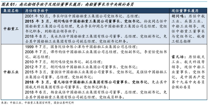 其中,南船董事长雷凡培是中共十九届中央委员会候补委员,北船董事长胡问鸣是航母工程总指挥。