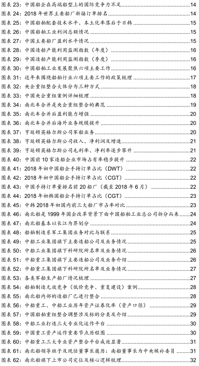 (2)今年是船舶战略性重组的关键一年,南北船整合预期高:今年船舶被列入战略性重组的重要领域之一。南北船在资产运作、造船厂整合上均动作频频,若整合成功,民船大概率不形成垄断、军船协同加强。