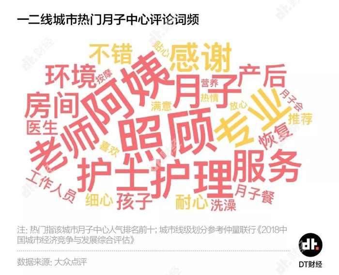从采集的评论中,DT君也发现,位置并不作为大家主要考虑的因素, “阿姨”、“护士”、“医生”是否“专业”、“耐心”、“细心”,“环境”、“服务”是否令人满意,才是大家最为关心的问题。其中“洗澡”、“按摩”等细节性服务也被多次提及。
