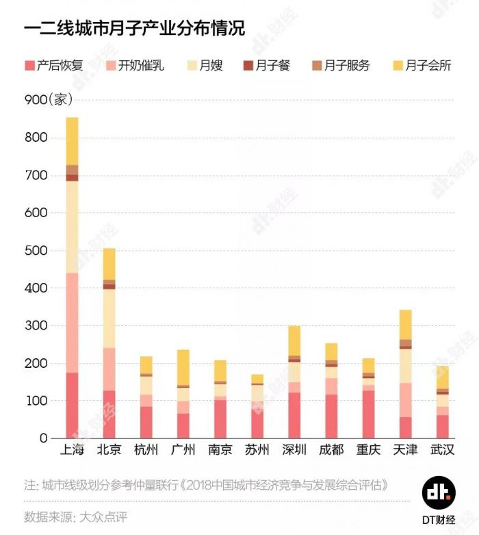北京、上海处于垫底的地位倒是令DT君十分惊讶,仔细研究一番后发现,北上月子中心数量最多,提供的价位选择也更丰富,低价位中,大多是提供母婴护理、产后修复 、月嫂等单项收费的月子中心。