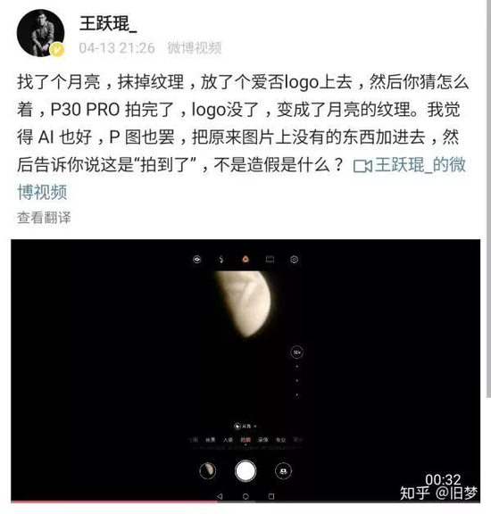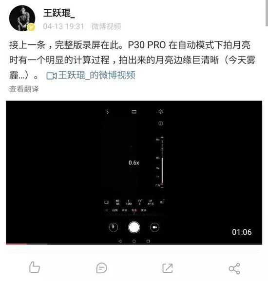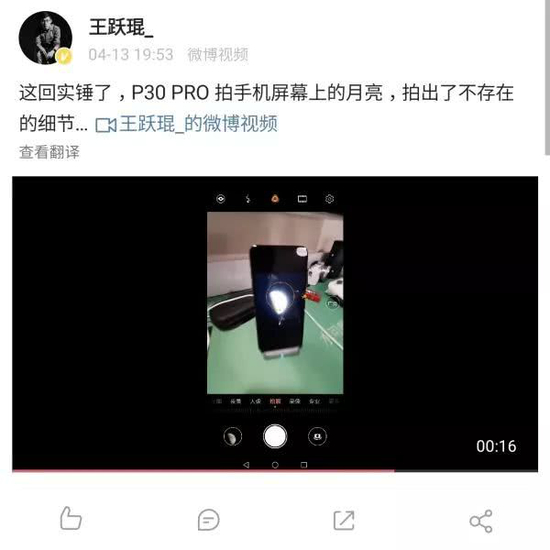 与上海王女士用华为mate 20 Pro拍伤口而伤口不见了略有不同,此前闹得沸沸扬扬的华为P30 Pro“拍月亮事件”是这样的: