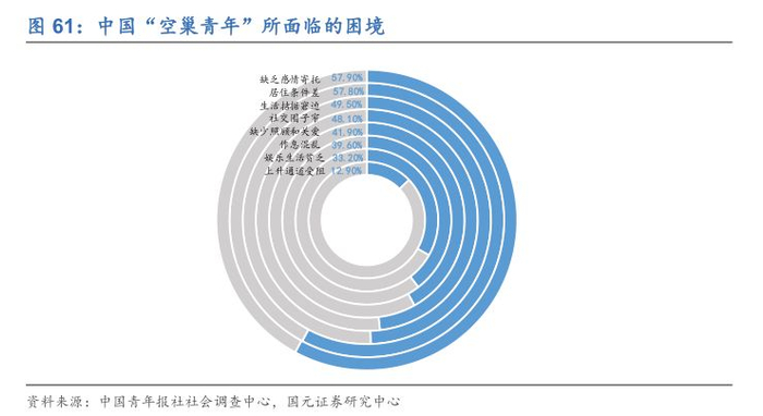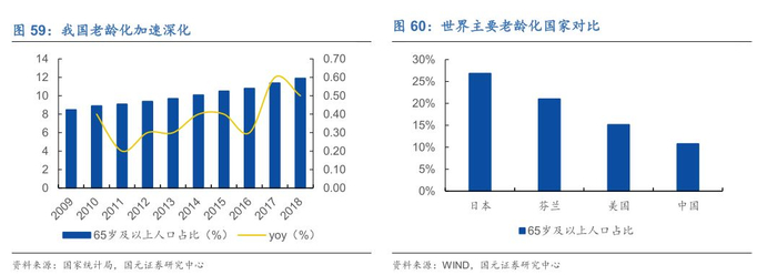 1)“空巢老人”。我国老龄化程度不断加深,目前已经进入严重老龄化阶段。2018年,我国60周岁及以上人口2.4949亿,占到总人口的17.9%;65周岁及以上人口1.6658亿,占总人口的11.9%。其中有超过40%(《中国空巢老人现状报告》)的空巢老人(没有子女照顾、单居或夫妻双居的老人)。在城镇化进程加快的影响下,大量年轻人选择从农村涌向城市,从中小型城市涌向一二线城市,空巢老人数量在过去15年里增长了近一倍。随着90后独生子女一代的父母步入老年,2030年“空巢老人”数量或将超过2亿。宠物的陪伴能够很好地帮助空巢老人排解孤单。目前我国老年人养宠比例相较于美国日本还处于较低水平,但随着老龄化的继续深入以及老年人对新鲜事物接受度的提高,老年人养宠比例有望提升。