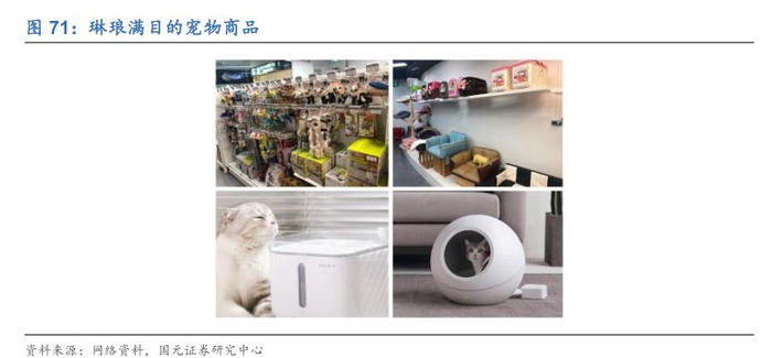 宠物商品细分化,宠物服务逐步完善。宠物用品的种类也日益丰富,宠物主越来越重视为朝夕相处的宠物和自己营造舒适的生活环境。仅就宠物洗浴美容来说,就有针对不同品种、年龄和体型宠物细分的洗浴和美容用品。为了迎合年轻一代养宠人群的生活消费习惯,时尚、舒适和智能成为宠物用品主流趋势,各种兼具设计感、“颜值”和实用性、功能性的产品层出不穷。未来宠物用品将覆盖宠物的所有生活场景,同时提高宠物和宠物主的生活质量。