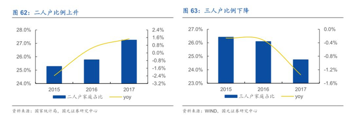 1)家庭数量。根据国家统计局数据显示,我国2017年家庭数为4.46亿户。2011至2016年,全国家庭户数变动幅度很小,与2010年第六次全国人口普查结果基本持平。虽然二胎政策全面放开,但我国人口自然增长率持续下滑,2017年人口自然增长率仅为5.32‰,2018年大幅下滑至3.81‰。秉持谨慎估计的原则,我们假设我国家庭户数未来五年维持不变。