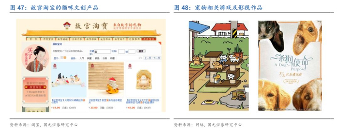 2.4 宠物衍生文化演绎另类精彩网络传播渠道的多样化带动了宠物衍生文化的兴起,各类“网红”猫狗借助短视频、表情包的形式进入大众视野,各种以宠物为原型的周边、电影、直播、游戏等,掀起了一场文化领域的“萌宠”风潮。在“情感消费”、“悦己型消费”理念大行其道的当下,云养宠正在成为宠物行业新的消费增长点。