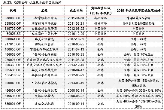 投资区域重分类:根据QDII基金的产品合同界定,目前已成立的93只QDII权益基金中有42只投资区域为全球。20只投资美国地区,15只投资香港地区,另有少数投资于亚太、大中华地区、金砖四国、德国、欧洲和印度。