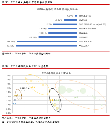截至2018年底,公募市场共有49只跨境权益ETP,总规模合计263亿元,包括2只跨境分级、12只ETF和35只LOF,投资区域覆盖中国香港、美国、德国、金砖四国。