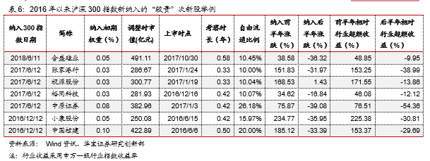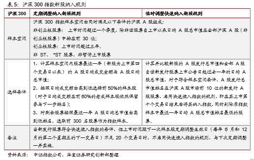 2016年以来被纳入沪深300指数的次新股均按照定期调整规则被纳入。从2016年以来沪深300指数成分股的历次调整来看,其成分股中次新股均是在定期调整时点被纳入指数且其上市日期距离纳入指数日期之间均超过20个交易日,即2016年以来被纳入沪深300指数的次新股均按照定期调整规则被纳入——次新股仅需满足相应的日均成交额和日均总市值要求即可。