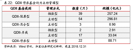 截至2018年底,公募市场共有23只QDII-债券基金,总规模88.71亿元,上述基金均为主动管理模式,其中,仅海富通美元债LOF一只场内基金,该基金截至2018年底规模为1.14亿元,全年净值收益2.94%,在QDII债券基金中处于中上水平。