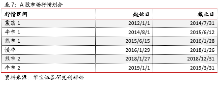 以成立时间较早、数量较多的沪深300增强基金为例,分析增强基金在各年及不同历史行情下相对标的指数(含全收益指数)的超额收益,具体行情划分阶段如下表所示