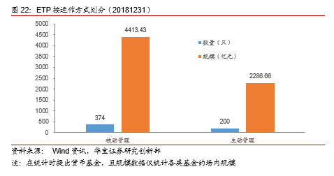 按运作方式分为:被动式ETP、主动式ETP,这一分类维度下将货币ETF剔除统计范围。