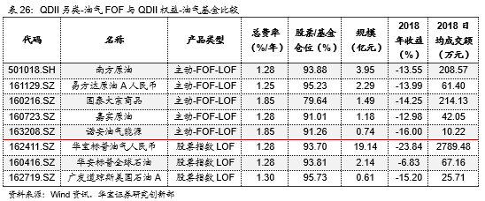 华安石油、华宝标普油气、广发道琼斯美国石油均为指数LOF,投资标的以境外油气类股票为主。从标的指数的差异来看,华安石油主要投资全球最大的120只油气类股票,2018年该基金的跌幅相对较小,华宝油气基金和广发道琼斯美国石油则主要投资美国的油气上游产业链标的,2018年两只基金的收益分别为-23.84%和-15.20%。