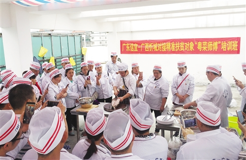 广州市轻工技师学院叶军锋表示,学校专门为贵州省毕节市、黔南州扶贫对象量身定制了“粤黔‘粤菜师傅’技能扶贫项目”,学员在两个月内完成烹饪理论知识、粤菜技能实训、餐饮企业管理等相关内容的培训,培训考核合格的学员可直接到广州知名餐饮集团工作。