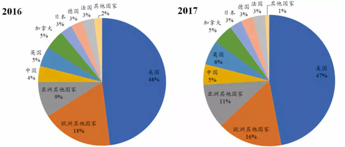 2016-2017年全球医药研发公司区域分布情况