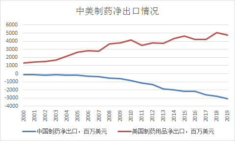 看医疗设备,美国2018年净出口达到32亿美元;制药净出口接近50亿美元。