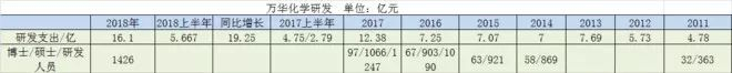 ( 2018年万华化学研发达到了16.1亿元,下半年计提了10.5亿研发费用,下半年研发计提高于上半年的5.66亿,下半年盈利能不雪上加霜吗?2018年公司又新增了179名研发人员)。