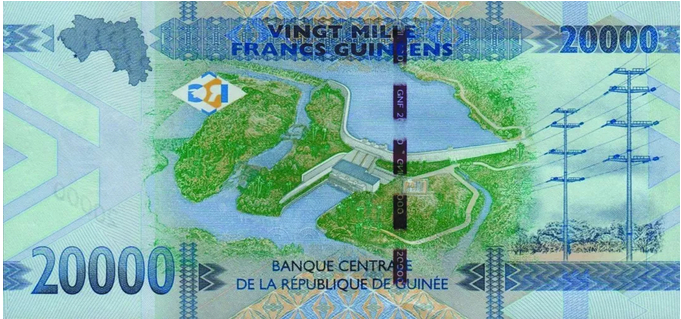 在西非国家几内亚,当地朋友送给我几张2万几内亚法郎(约合人民币14元)塑料钞。朋友告诉我,2万几内亚法郎是当地最大钞票,印在背面的凯乐塔水利枢纽工程,是几内亚有史以来规模最大的综合性水利枢纽项目。