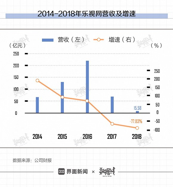 财报显示,2018年乐视网营收15.58亿元,同比减少77.83%。其中,运营业务(广告投放业务及付费业务)收入8.54亿元,占比54.82%。