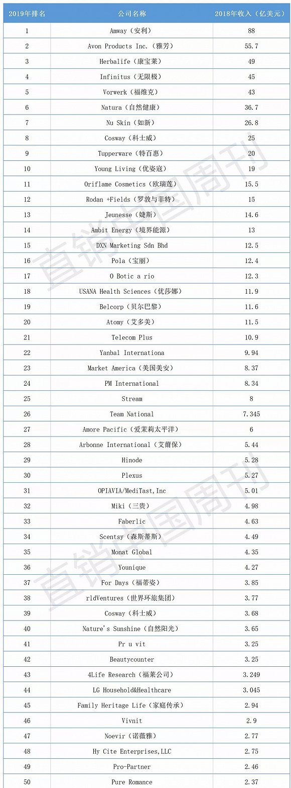 2019全球直销企业100强名单出炉,仅9家中国拿牌公司上榜