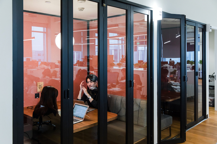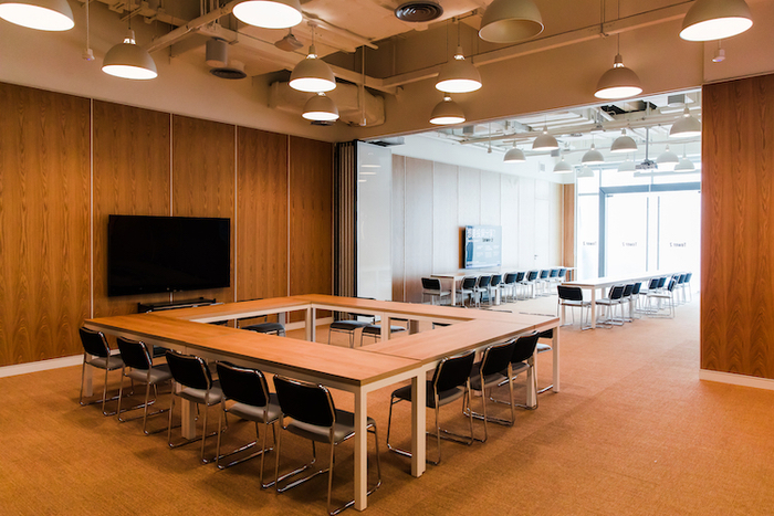 提供多样化的会议空间是利丰 Powered by We 项目的另外一个亮点,WeWork经典的单间电话亭在这里被升级为可供四人召开电话会议使用的超级电话亭,以方便这个全球供应链管理巨头的与世界各地的合作伙伴进行小型电话会议沟通。