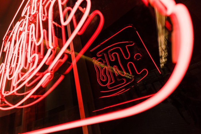 从裸露屋顶制造的工业感、相对明快的色彩搭配和吊顶灯等元素中不难认出 WeWork 惯有的设计语言,但同时,家具选择、墙绘装饰等方面有明显带有地域性、个人化的特征,港味颇族的壁画、手工编织的装饰,和旧时香港最具识别度的霓虹灯也通通出现在办公空间内。