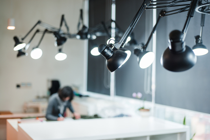 为此,Powered by We团队特别定制了全套物流系统。每天,从世界各地运送来的包裹会被集中送到一层的物流中心,随后分发到每层的收发室,方便员工并开包。收发室周围设计了展厅和Techroom,配备宽大的会议桌和八爪鱼造型的专业照明灯具,方便随时就着样衣、面料举办讨论会。