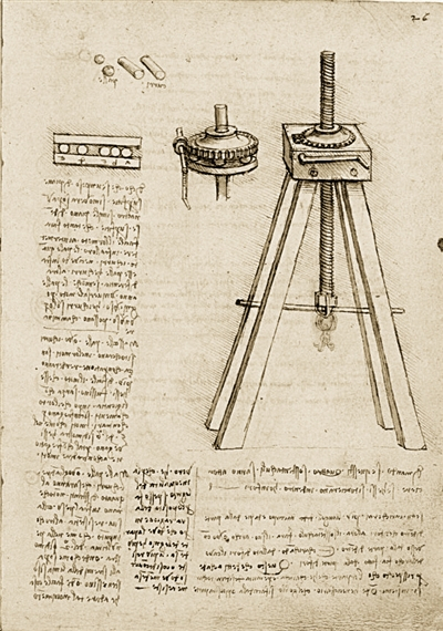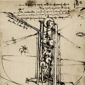 达·芬奇还发明了一种磨针设备,它本可以为意大利的纺织工业做出宝贵的贡献。这台机器用人力转动一个转盘,转盘上连着一个小的打磨装置和一条抛光带。他认为这也许会让自己发财。但是不必说,达·芬奇从未实现他的计划。对他来说,完成构思就已经心满意足了。